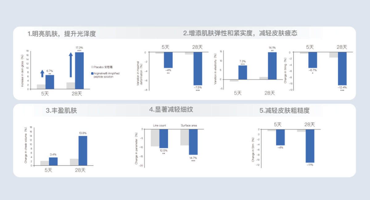 品牌灵魂成分素野5D肽,灵感来自医美肉毒杆菌,集素野12年多肽应用技术与全球多肽研发领导者路博润35年多肽研究之长,有效淡化表情纹,安全有效地解决肌肤松弛、皱纹、暗沉等衰老问题,5天年轻5岁。